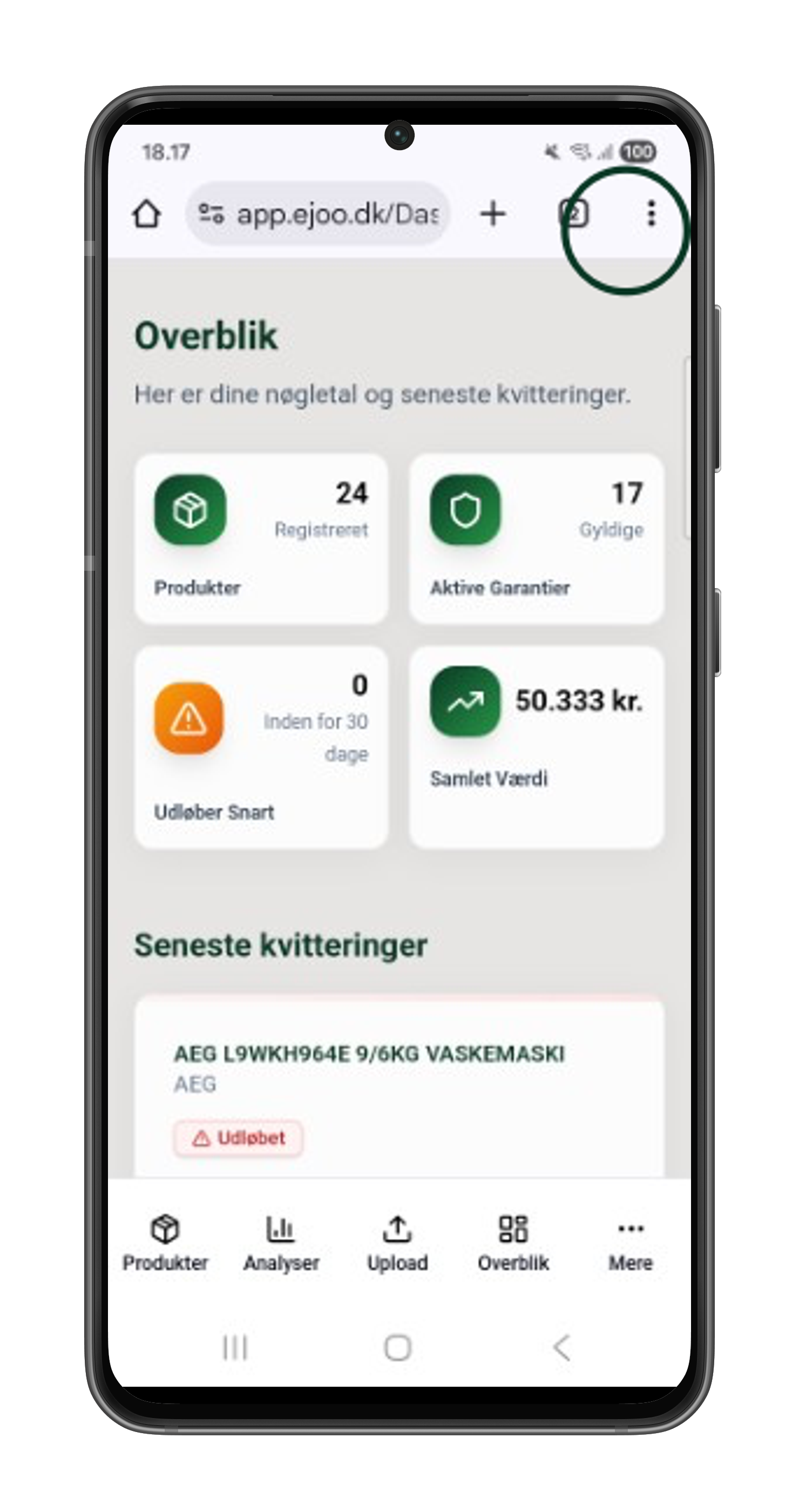 Vi har endnu ikke en dedikeret app, da vores primære fokus har været at lancere Ejoo og give vores brugere adgang til en enkel og effektiv måde at organisere og holde overblik over det, de ejer – samt kvitteringer og garantier.