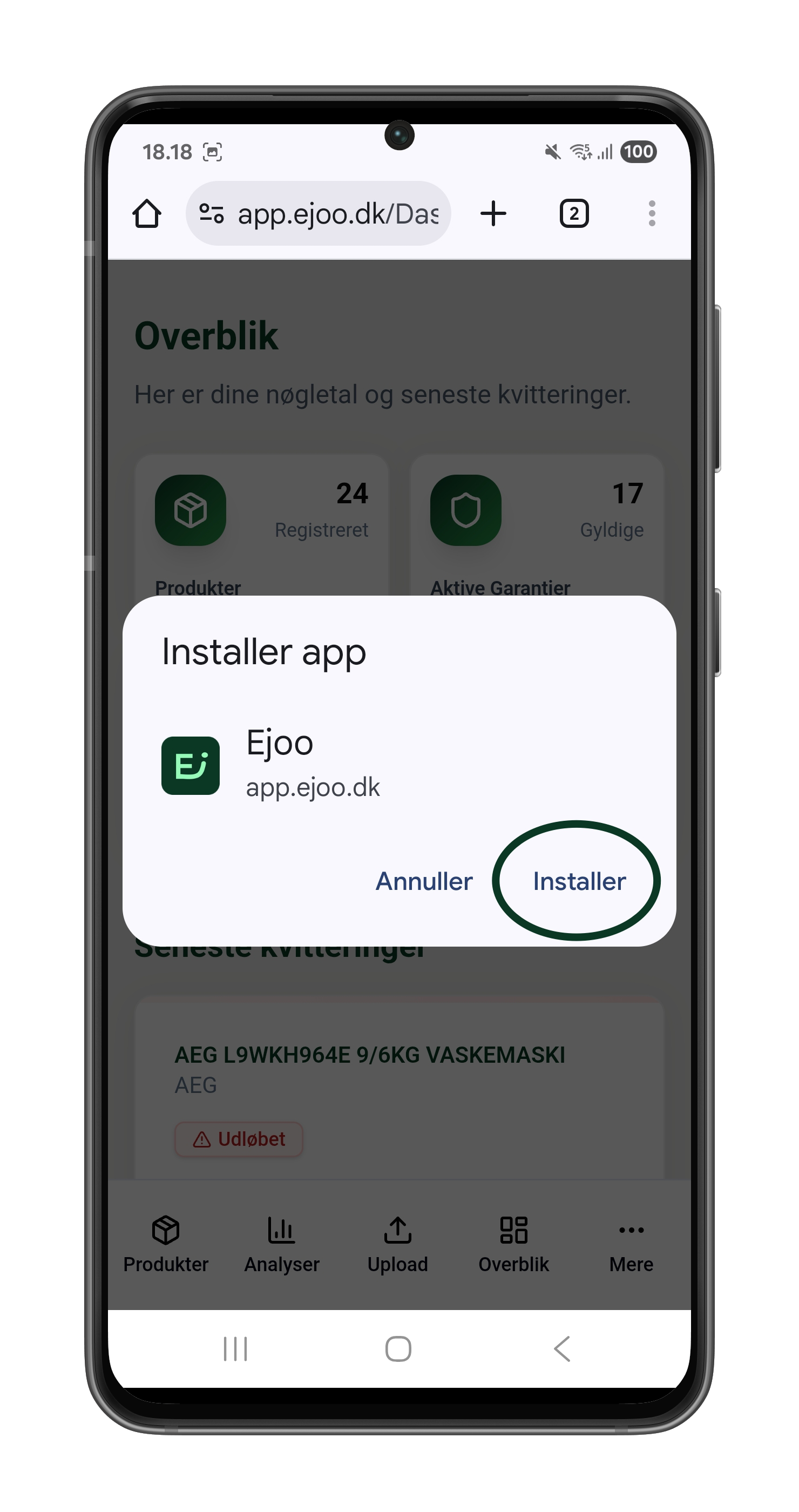 Åbn Chrome-browseren på din mobil og gå til app.ejoo.dk