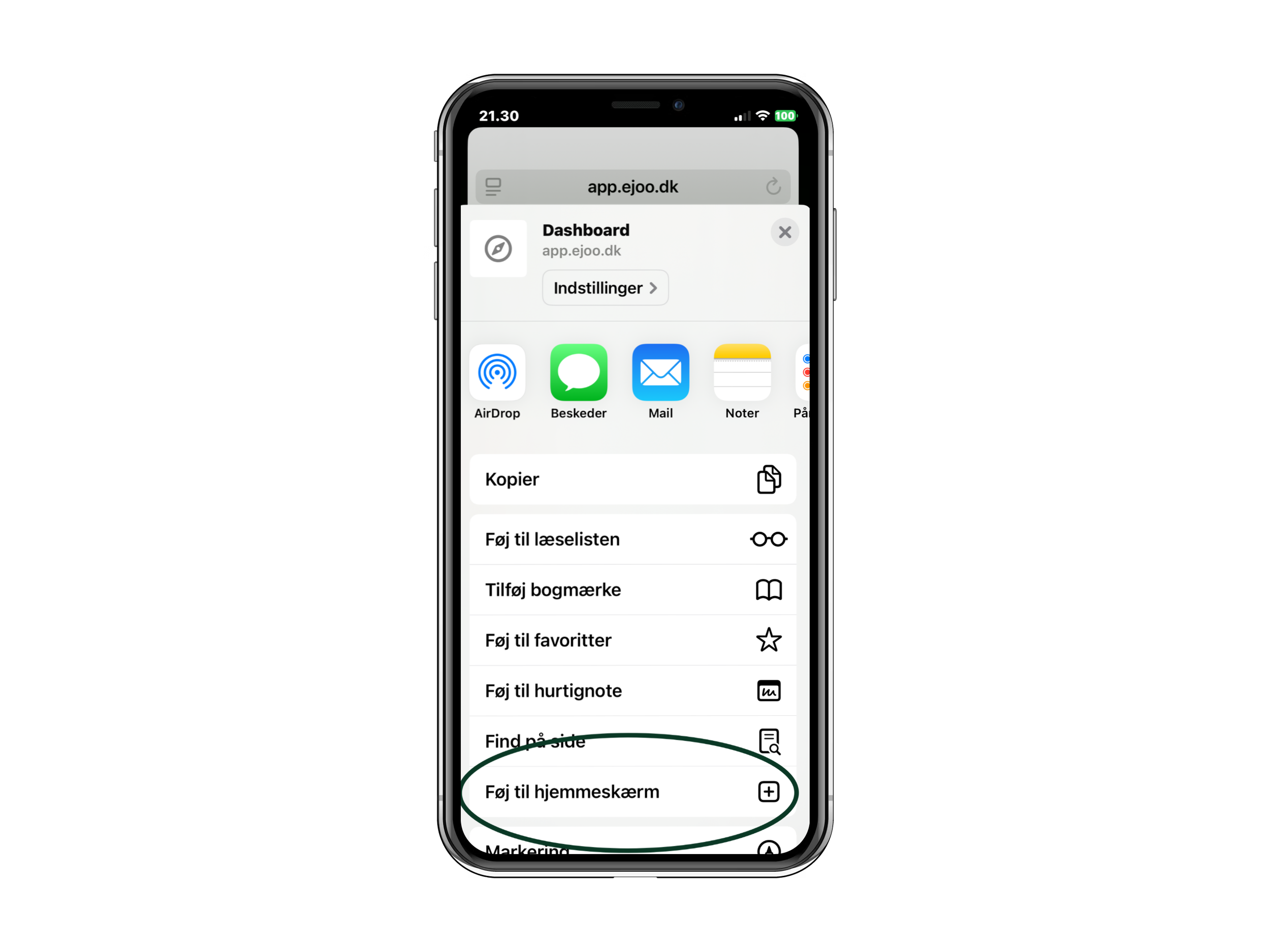 Åbn Safari på din iPhone og gå til app.ejoo.dk
